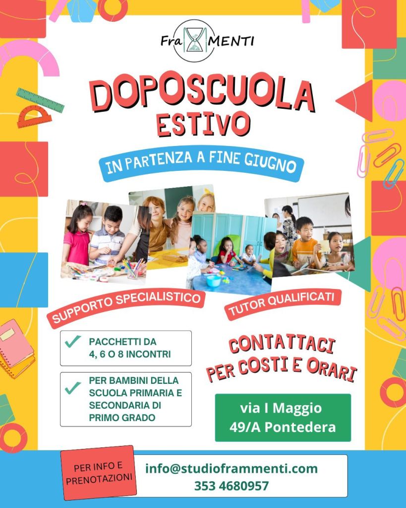 In partenza da Giugno il Doposcuola dello Studio FramMenti, con tutor qualificati e supporto specialistico per le diverse esigenze di ogni partecipante.